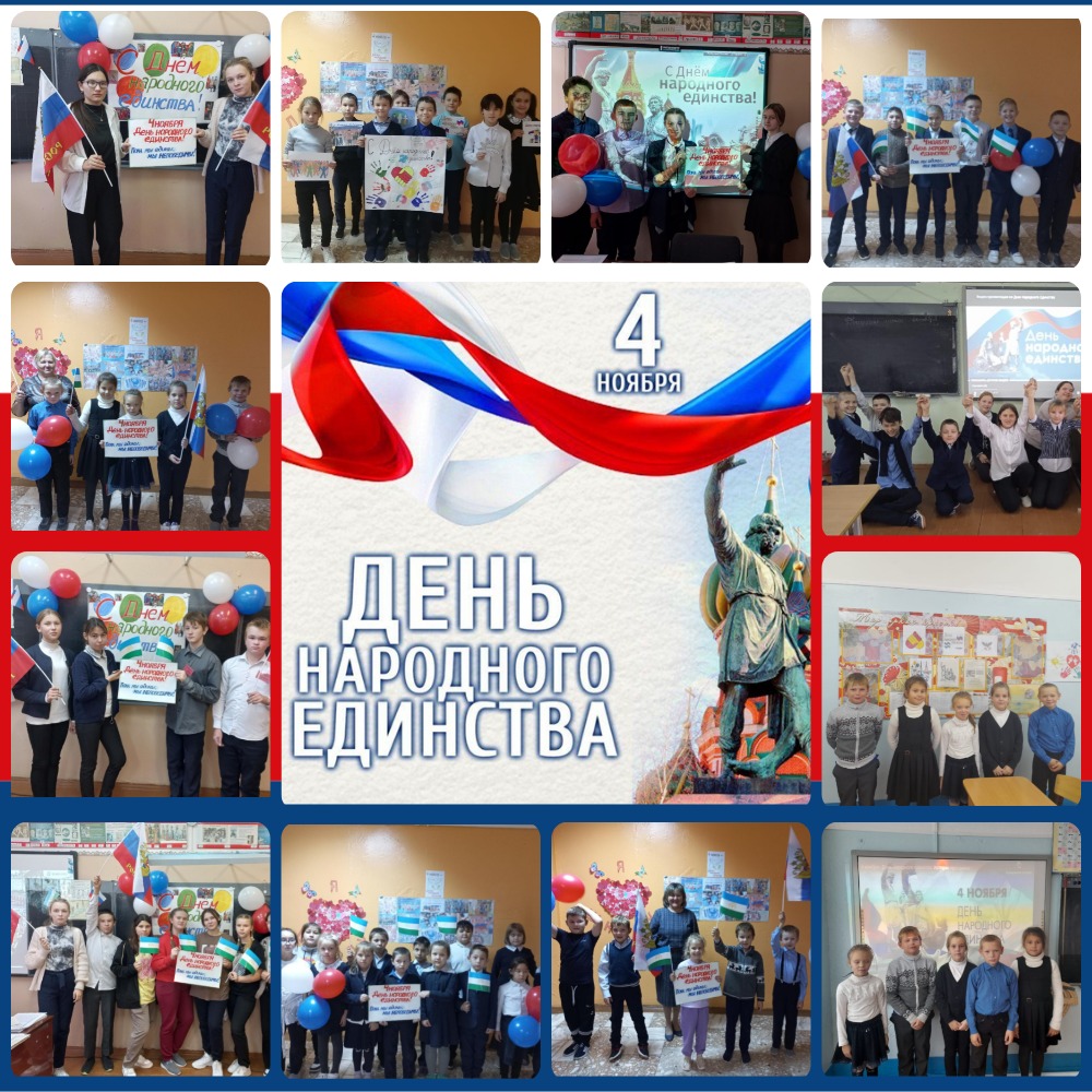 4 ноября вся наша страна празднует День народного единства-праздник, который сближает все народы. Он относится к государственным праздникам России.В целях популяризации Дня народного единства с 24 октября по 28 октября в нашей школе проходят классные часы, выставки в школьной библиотеке,музейные уроки,посвящённые этой дате. Эти мероприятия позволяют глубже проникнуть в то, что произошло на Руси более 400 лет назад, и понять, как единение помогло русскому народу справиться с захватчиками, о подвиге Кузьмы Минина и Дмитрия Пожарского.